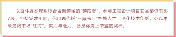 “成功的花,人們只驚慕她現(xiàn)時的明艷!然而當(dāng)初它的芽兒,浸透了奮斗的淚泉,灑遍了犧牲的血雨”,這是他最喜歡的一句詩。在咨詢的道路上,他不斷更新知識結(jié)構(gòu),努力克服“知識恐慌”,苦練內(nèi)功,用自己的實戰(zhàn)業(yè)績贏得了市場、也贏得了業(yè)主的認可,成為公司綜合咨詢領(lǐng)域的技術(shù)創(chuàng)新領(lǐng)軍人物。