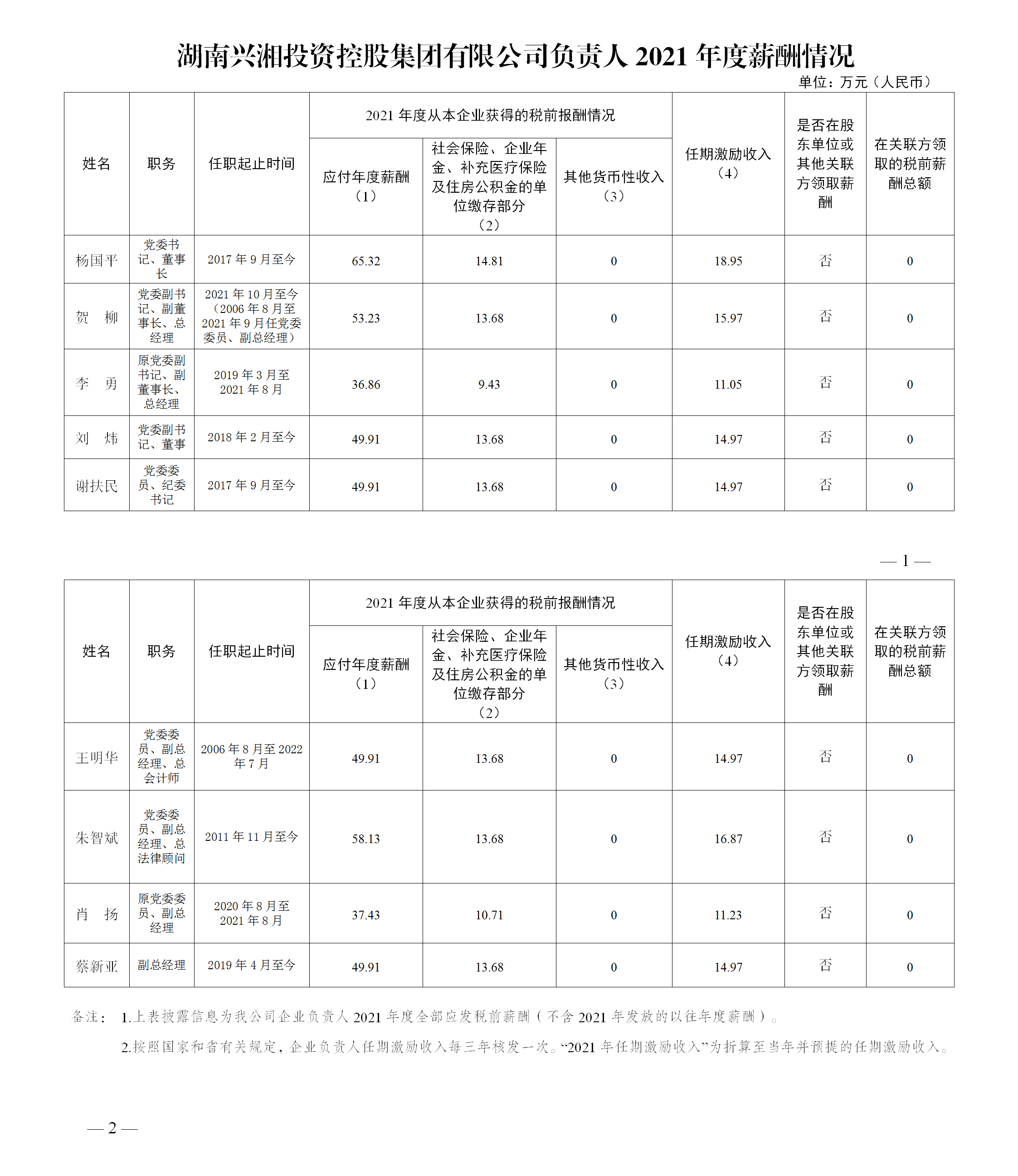 興湘集團(tuán)、原國(guó)資集團(tuán)、原發(fā)展集團(tuán)企業(yè)負(fù)責(zé)人2021年度薪酬情況公示