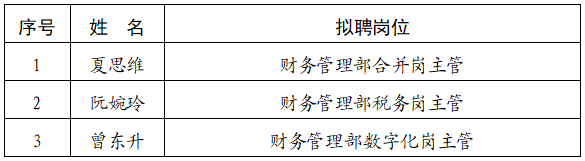 根據《湖南興湘投資控股集團有限公司總部財務人員招聘工作方案》安排,經研究,擬錄用夏思維等3人至集團總部工作,人員名單及崗位公示如下: