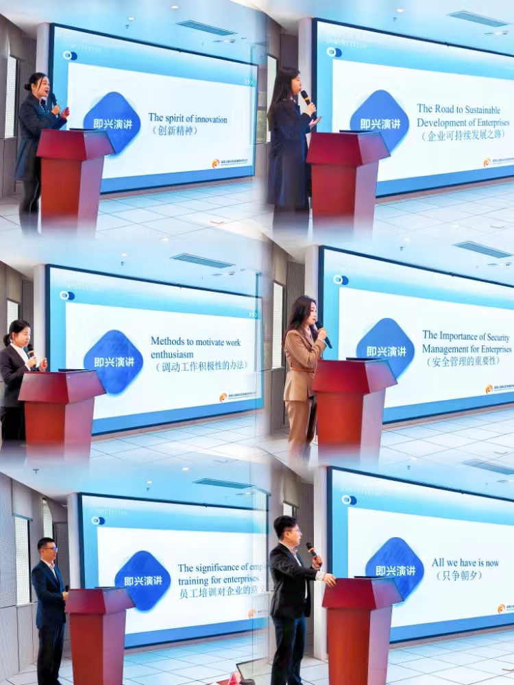 復(fù)賽現(xiàn)場,選手們歷經(jīng)現(xiàn)場口譯、即興演講、問答交流3個環(huán)節(jié)的考驗,圍繞隨機(jī)抽取的話題侃侃而談,觀點新穎,視角獨(dú)特,為在場觀眾呈現(xiàn)了一場語言魅力和經(jīng)營管理思維交融的視聽盛宴。參賽選手們即興演講的精彩表現(xiàn),睿智機(jī)敏、妙語連珠、自信昂揚(yáng),贏得了現(xiàn)場評委和觀眾的一致好評。
